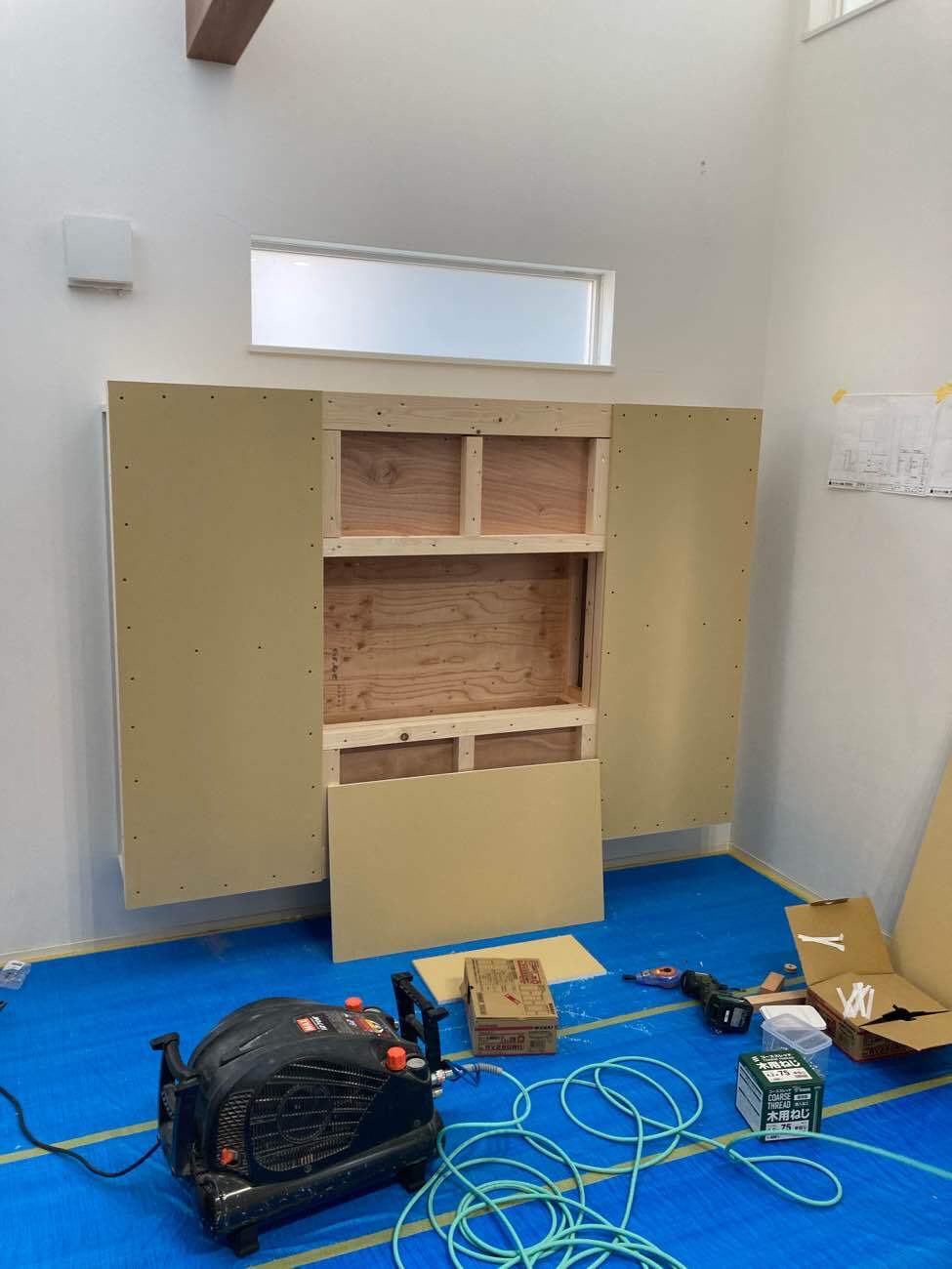 収納できる+配線すっきりの壁を新たに造作することに・・・
