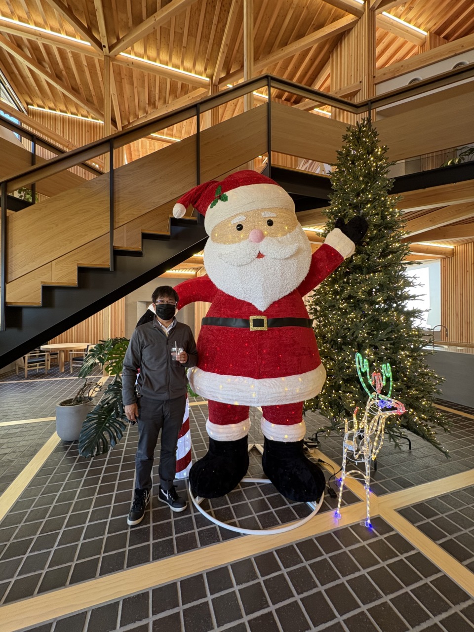エントランスにめちゃめちゃ大きいサンタクロースとツリーが!
